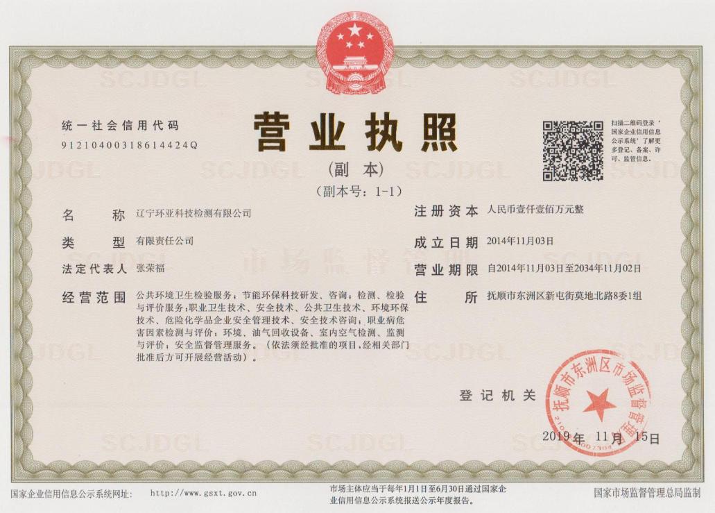 遼寧環(huán)亞科技檢測有限公司秉承“公平、公正、客觀、真實”的服務理念,力求為遼寧省各企事業(yè)等用人單位提供更優(yōu)質的服務,公司領導率領全體員工歷時一年零八個月的時間操練各項基本技能,于2016年8月9日取得了(遼)安職技字(2016)第B-0019號《職業(yè)衛(wèi)生技術服務機構資質證書》